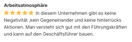 Mitarbeiter werden richtig ausgebildet und intensiv eingearbeitet. Wir sind alle junge Leute und lieben unsere Arbeit.
