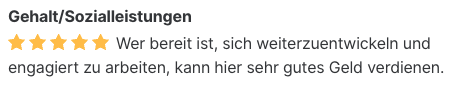 Das Besondere bei uns ist das Teamgefüge, die offene Kommunikation, die Weiterbildung, vor allem das hohe Gehalt.